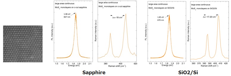 識別:サファイア、SiO2/Si基板全体に被覆した100%単分子膜MoS2